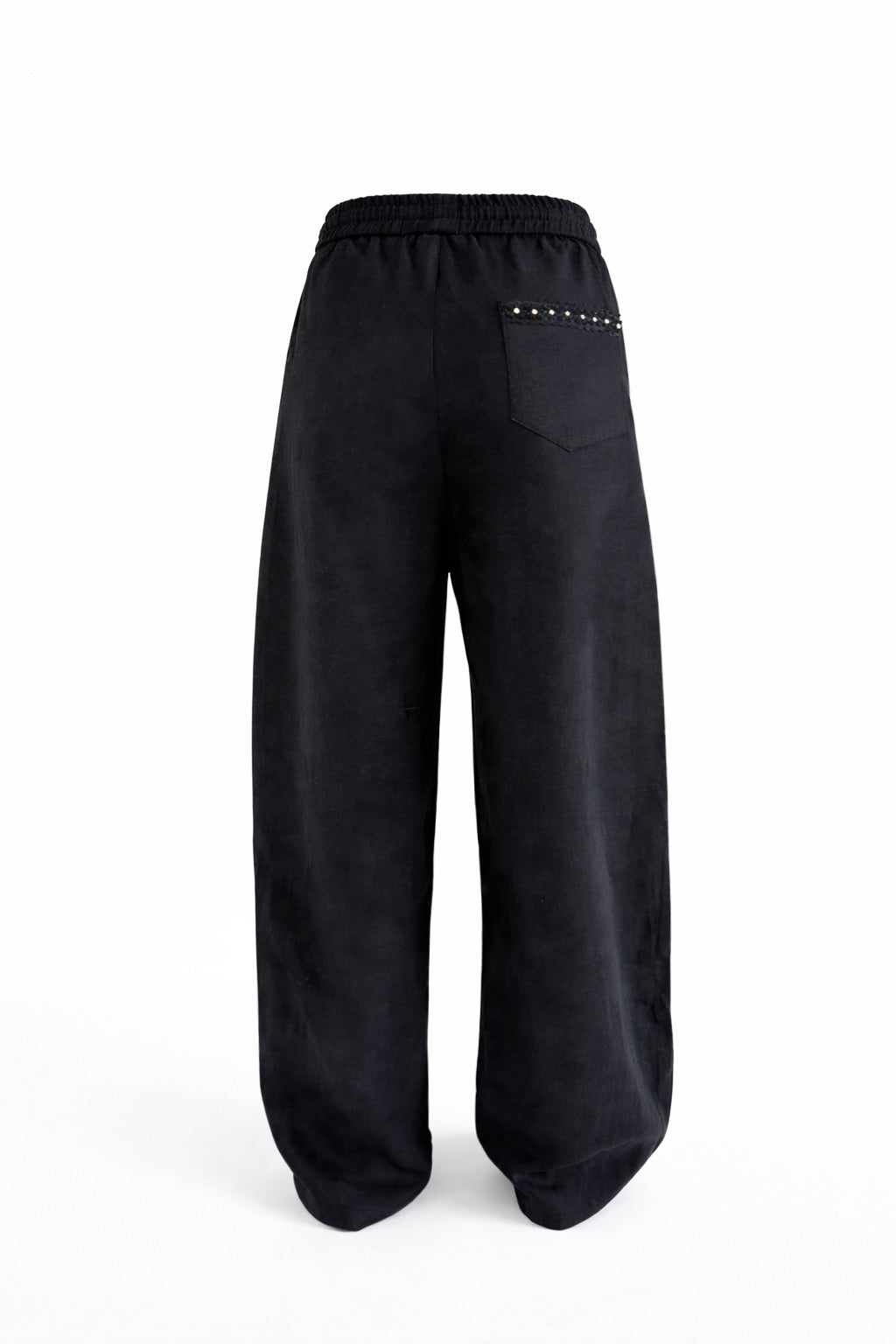 מכנס רחב בגזרת בלון עדינה, בצבע שחור סטון ווש